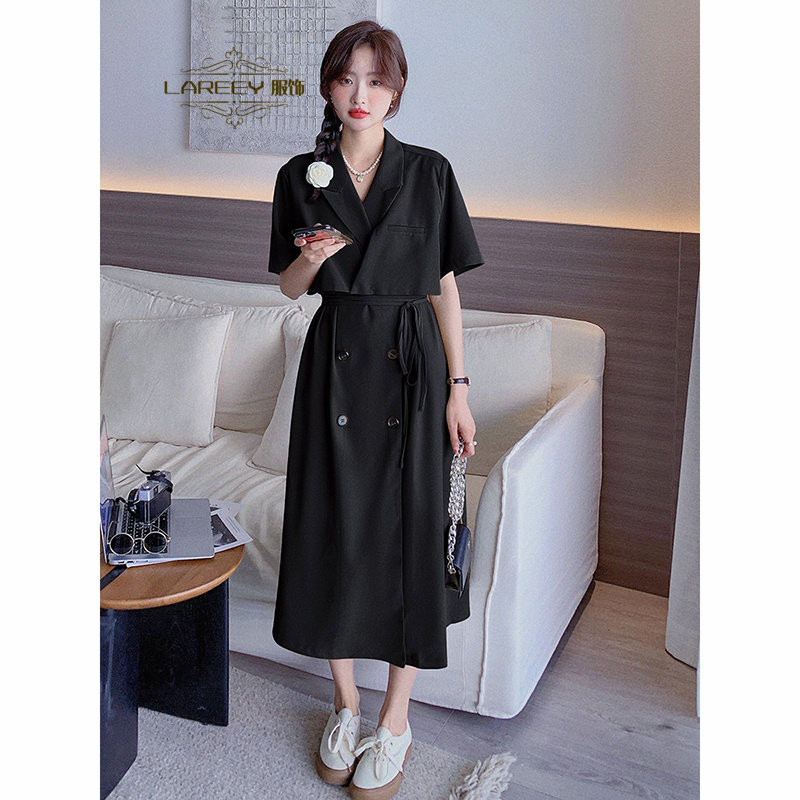 LAREEY法式赫本风2022春新款小众设计垂感收腰显瘦显白西装连衣裙热门设计联盟服务商
