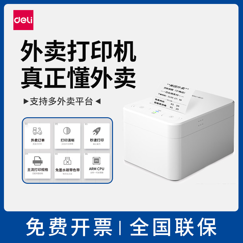 得力外卖自动接单神器手机蓝牙饿了吗/美团打印机多平台无线热敏外卖商家订单云打印机收银小票机热门设计联盟服务商
