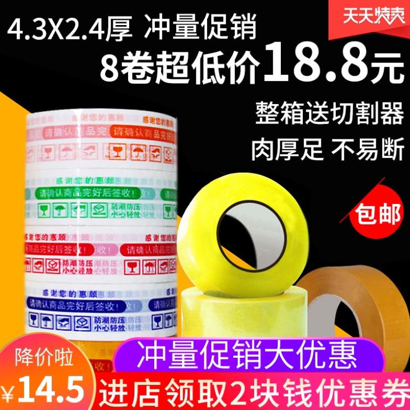 透明胶带淘宝打包装封口胶布大卷快递封箱胶带胶纸米黄色宽封箱带热门设计联盟服务商