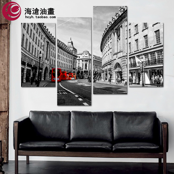 客厅装饰画复古工业风无框画黑白风景建筑挂画酒吧墙画咖啡店壁画热门设计联盟服务商