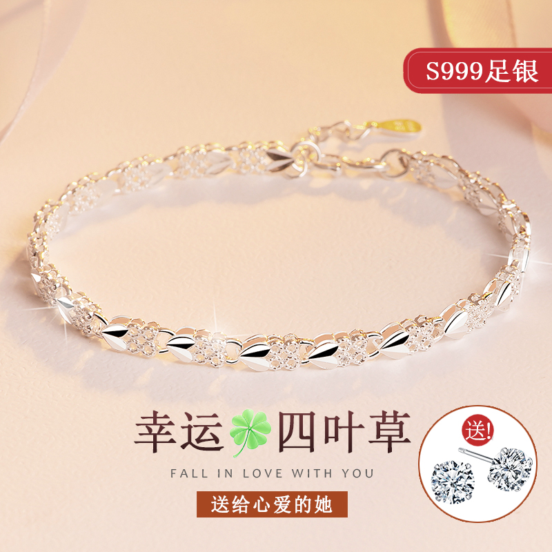 四叶草纯银手链女999足银手镯小众设计送女友闺蜜生日礼物送女友热门设计联盟服务商