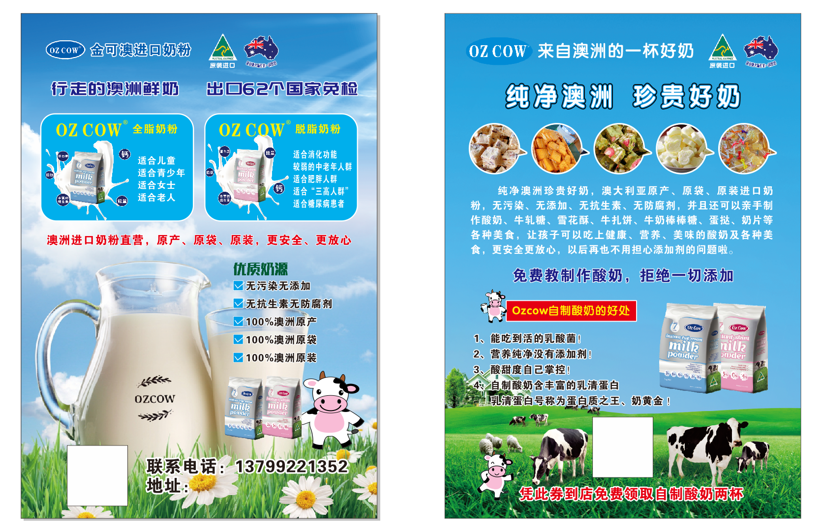 【金可澳宣传单页】奶粉DM宣传单定制团购设计酸奶卡片热门设计联盟服务商