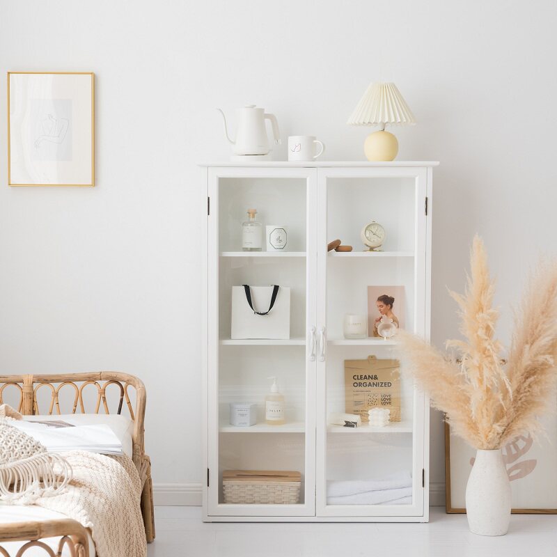 livingplus北欧风白色实木玻璃柜子木质立式柜装饰品简约展示柜热门设计联盟服务商