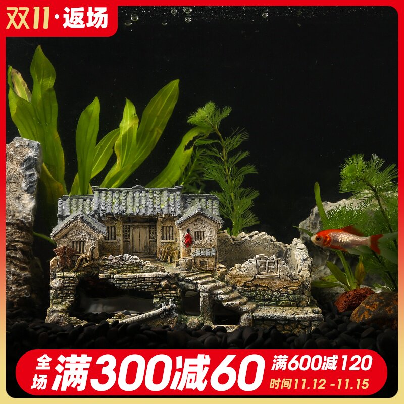 水族箱假山鱼缸造景装饰品鱼虾躲避屋建筑模型老房子微景观小摆件热门设计联盟服务商