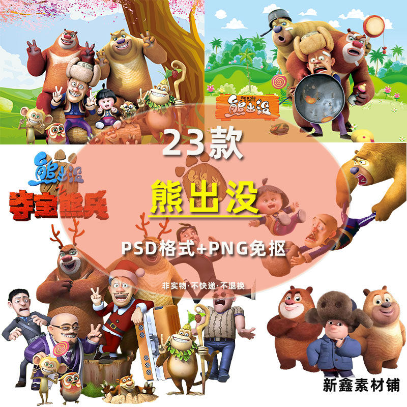 卡通动画熊出没熊大熊二光头强PNG夺宝熊兵儿童印花设计psd素材热门设计联盟服务商