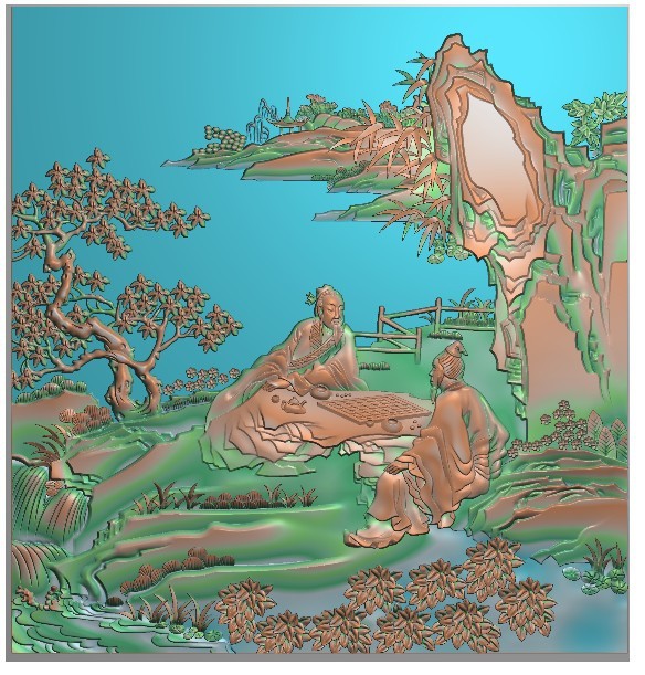 琴棋书画精雕图下棋jdp雕刻素材山水精雕图古代人物bmp灰度图定制热门设计联盟服务商