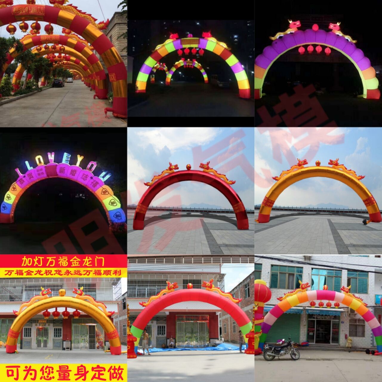 加厚夜光双龙拱门开业庆典充气广告金色气模结婚lLED婚庆彩虹门热门设计联盟服务商